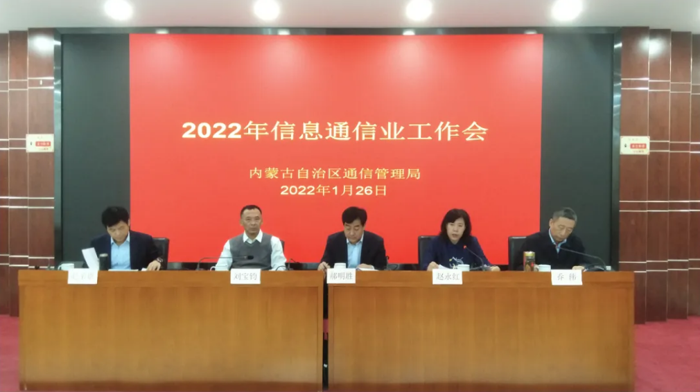 2022年1月26日,内蒙古信息通信业工作会议在呼和浩特以视频形式召开。会议以习近平新时代中国特色社会主义思想为指导,全面贯彻党的十九大和十九届历次全会精神及中央经济工作会议、2022年全国工业和信息化工作会议、2022年自治区第十一届委员会第二次全体会议精神,总结2021年工作,部署2022年重点任务。会议传达了内蒙古自治区政府副主席艾丽华批示,内蒙古自治区政府副秘书长郝明胜作讲话,内蒙古通信管理局党组书记、局长赵永红作工作报告。会上,内蒙古联通、移动、电信、铁塔、广电公司有关负责同志作交流发言。