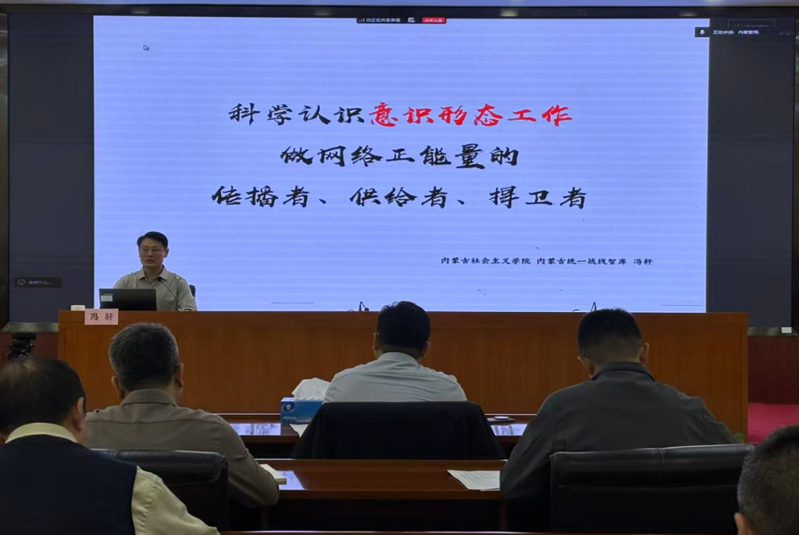 为深入学习贯彻习近平新时代中国特色社会主义思想,坚决落实意识形态工作责任制和网络意识形态工作责任制,充分发挥党组织和党员在网络空间的先锋模范作用,不断提升网评员履职能力,2025年12月31日,内蒙古自治区通信管理局邀请内蒙古社会主义学院副编审,自治区统一战线智库负责人冯轩老师作宣讲报告。